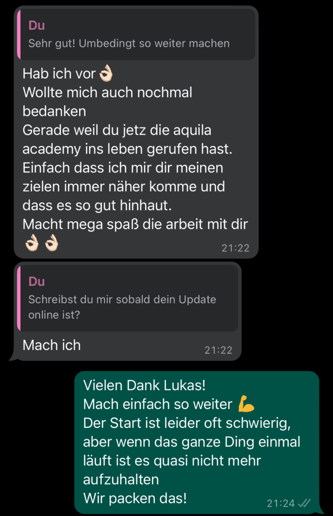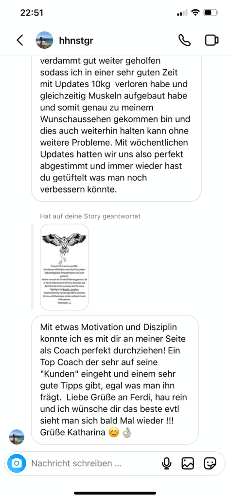 Von 121kg auf 95kg – deine Pläne und Gespräche haben mich in die richtige Spur gebracht. Deine Arbeit war die einzige Konstante in schwierigen Zeiten.