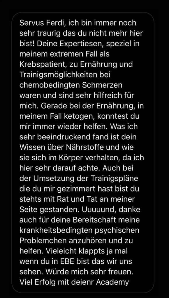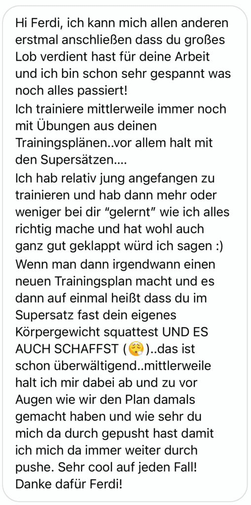 „Nach 4 Jahren dachte ich, mein natürliches Limit erreicht zu haben. Ferdinand hat mir so viel Wissen vermittelt – ich habe Fortschritte gesehen, die ich nie für möglich gehalten hätte.“